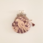 【ハンドメイド】がま口ポーチ・コインケース|お花と小鳥・パープル(口金8.5センチ)
